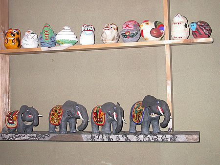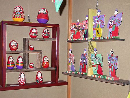 奥が工房だが、手前の住宅も松本宅のようだ | 残された完成品の張り子がもの悲しい | ||