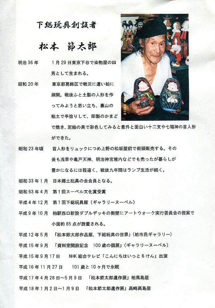 二代目は節太郎の娘が継ぐ予定だったが先に亡くなってしまったため、平成16年11月27日、松本節太郎が101歳で亡くなると共に下総玩具も一代限りで廃絶した。