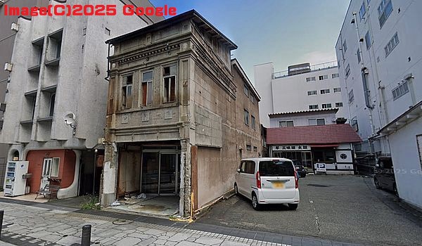 2022年 看板も外され廃業してしまったようである これまで看板テントで見えなかった 建物の装飾はレトロなたたずまいだった |