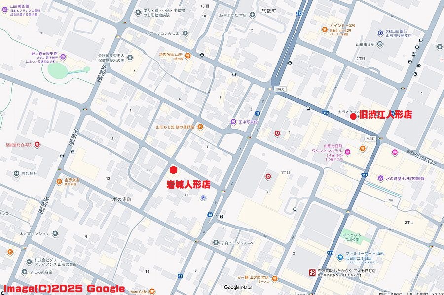 福島県の美術館見学の後、山形市内に着いたのは午後の5時をすぎていました。岩城人形店は残念ながらしまっていました。