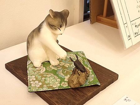 | このビルの2階が会場 | 看板猫がお出迎え |