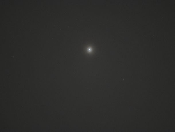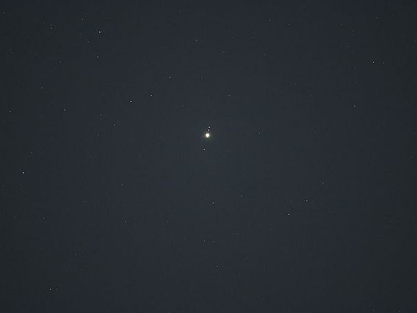 今晩の薄雲を通しての木星とガリレオ衛星。