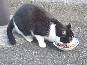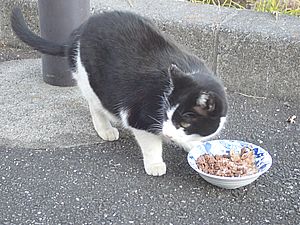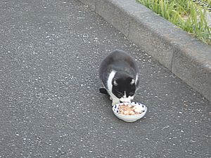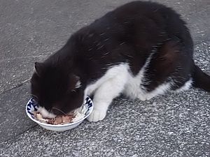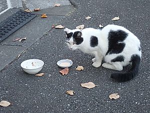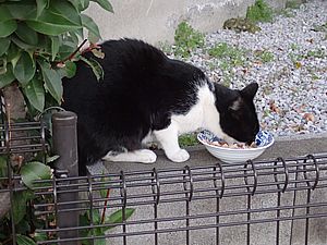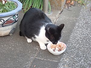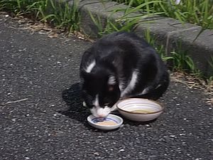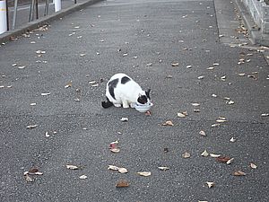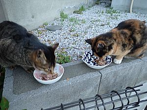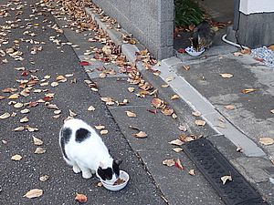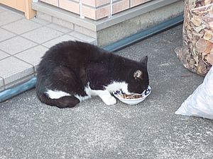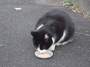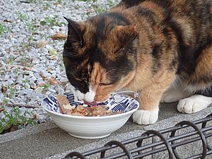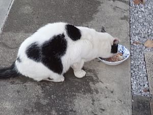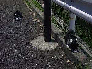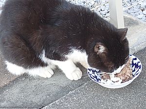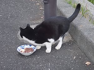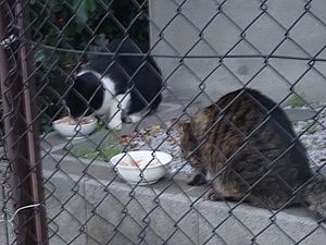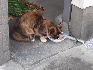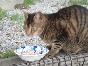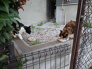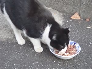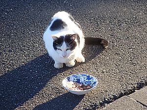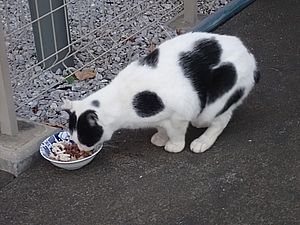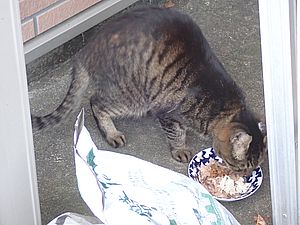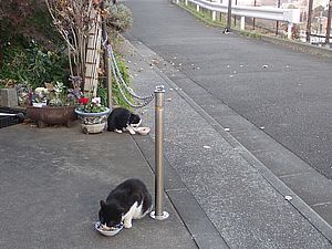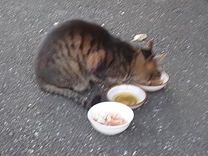 ファントム君と黒トラ2号は猫三角地帯で食べる。ファントム君を撮り忘れた。