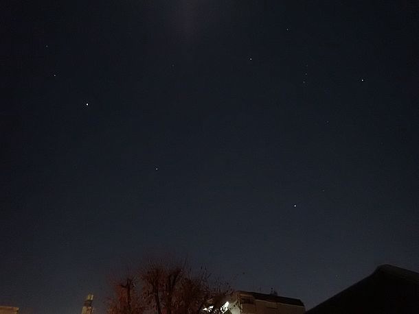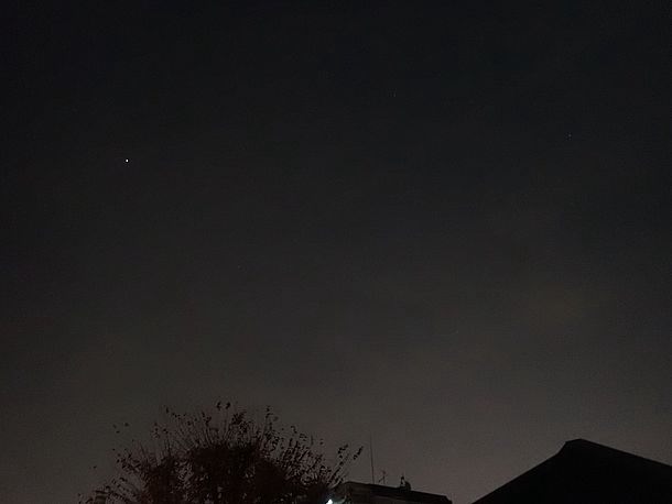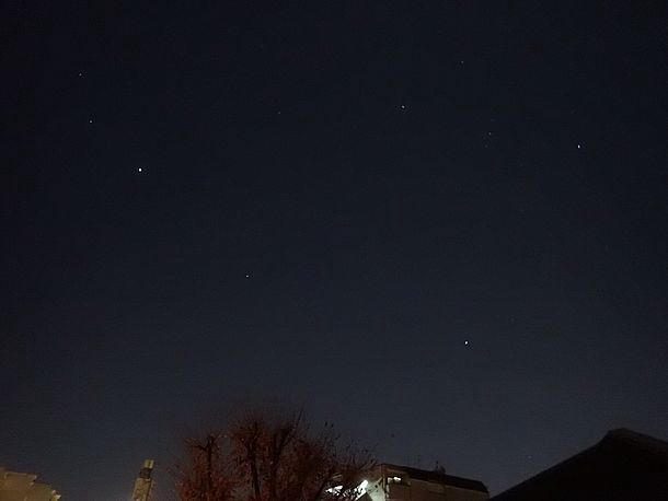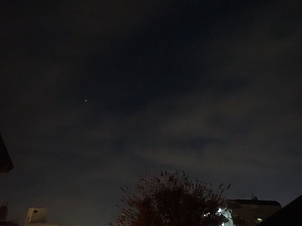22:58、雲は多いが木星が見えている。冬の大三角形も見えている。