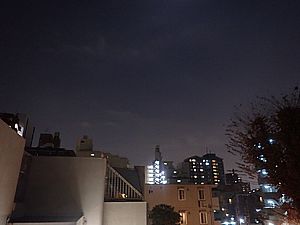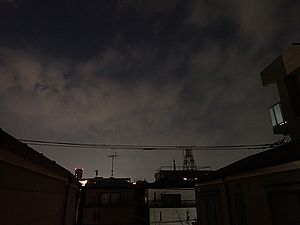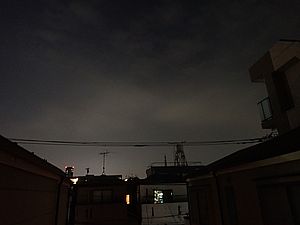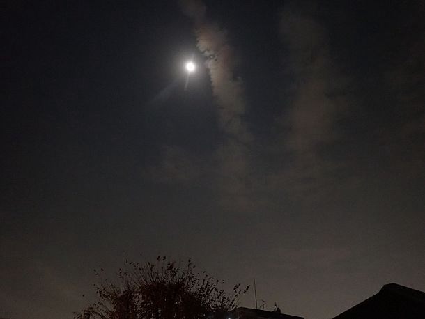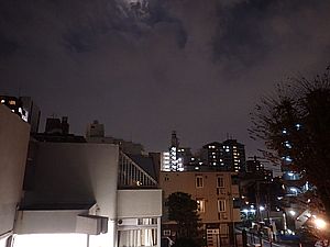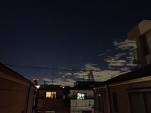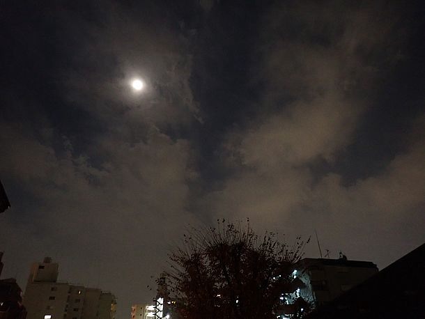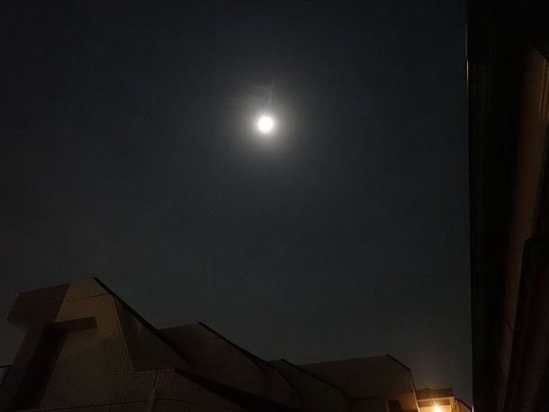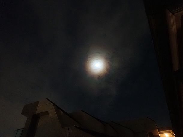 18:38、雲で月がかすんでいる。しばらく様子を見ることにした。
