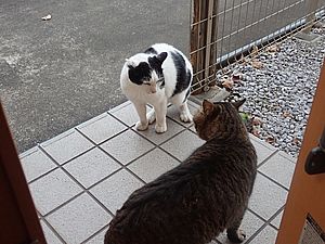 黒トラ2号があご黒にあいさつに行く。食事タイムの準備をする