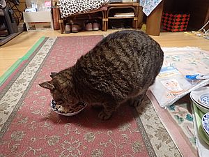 好評カリカリを投入するとまた食べ始めた。あご黒はちゅーるを2皿舐めた。
