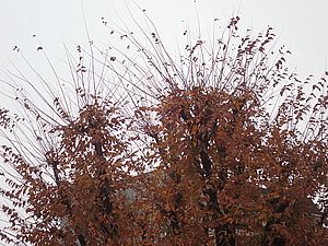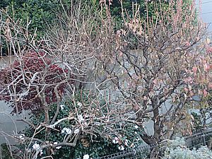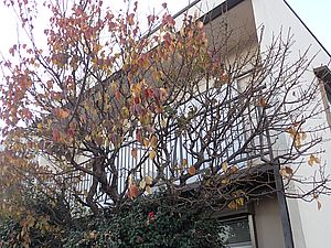 ウメの葉も残りが少なくなってきた。カキは葉がすべて落ちた。