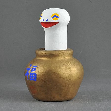 白井製の今戸焼は干支人形として制作されているようでその一部が寺社の授与品となっていたようだ。とくに最近は干支物として複数種(といっても2種類程)作品があり、その中の1つが授与品になっているようである。ここでは授与品を中心に扱っていきたい。