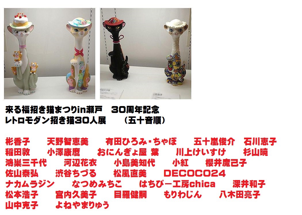 第30回来る福招き猫まつりin瀬戸 観光協会イベントチラシへ リンク切れになったときは 「ねこれくと」内のイベントチラシへ (PDFファイル) |