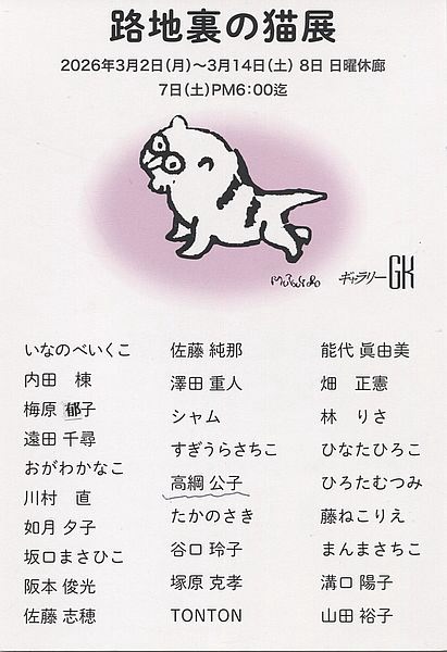 今回案内状をもらった高綱公子さんの猫たち 瀬戸の招き猫まつりの百人展に出品したり、