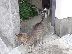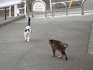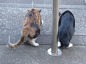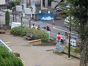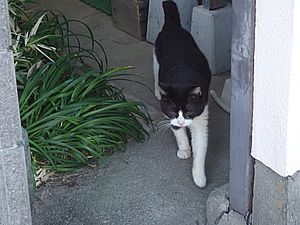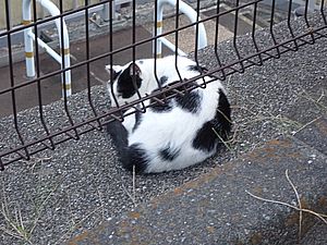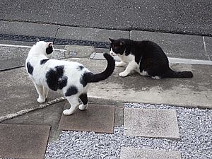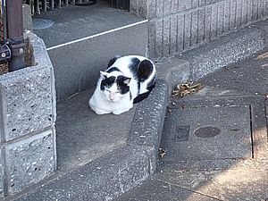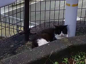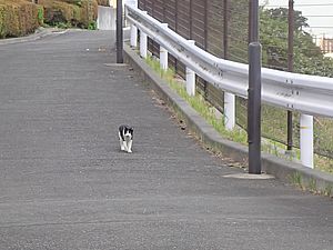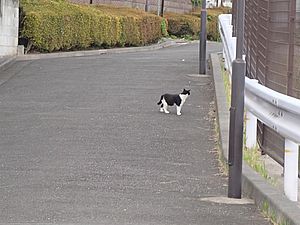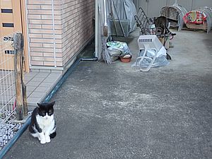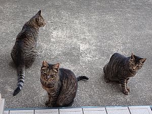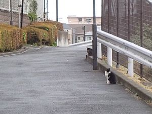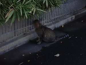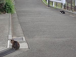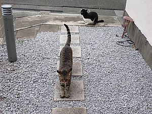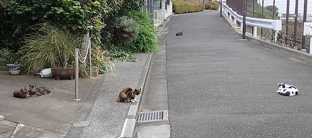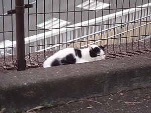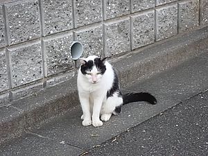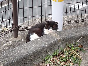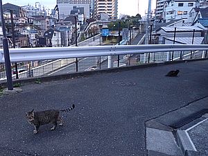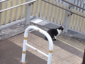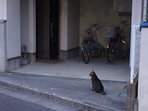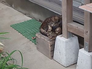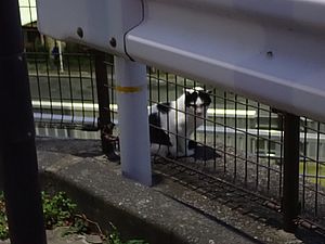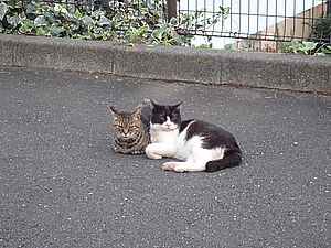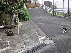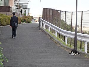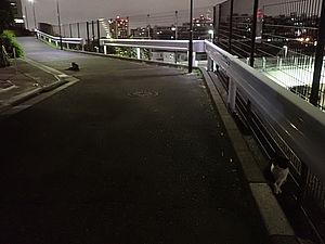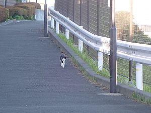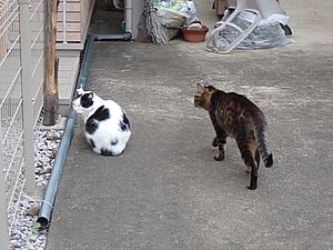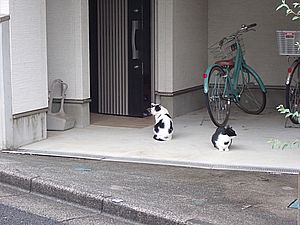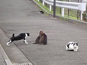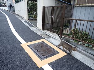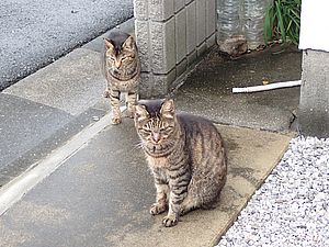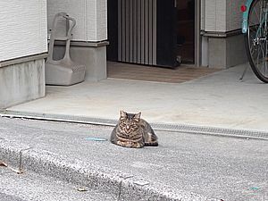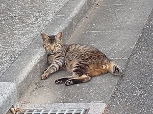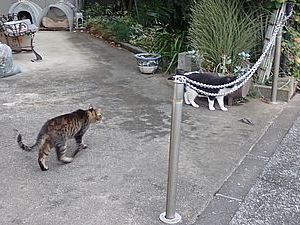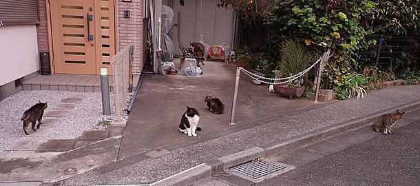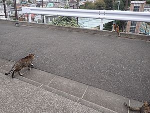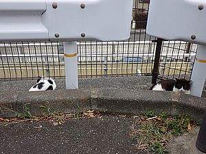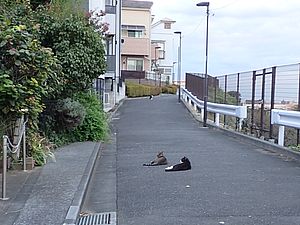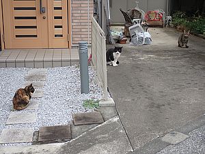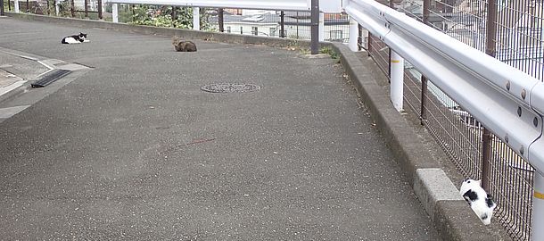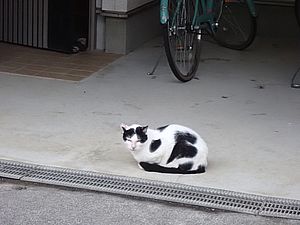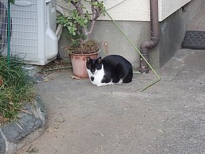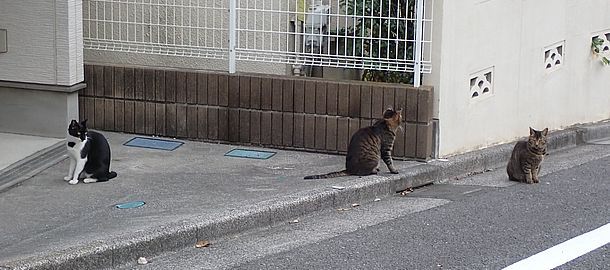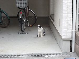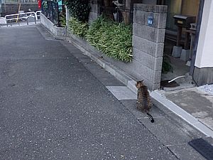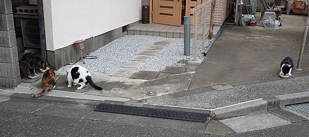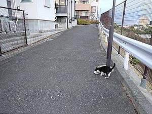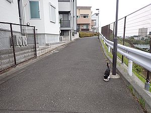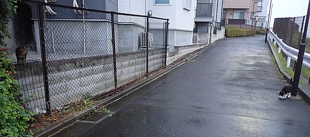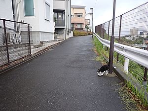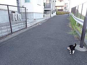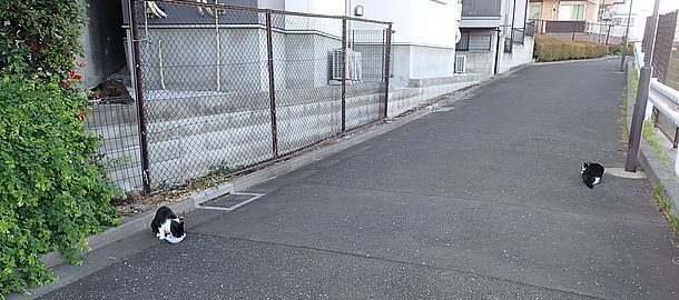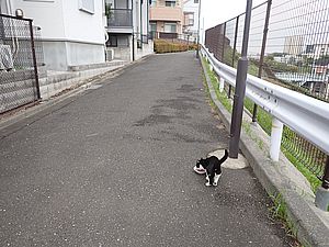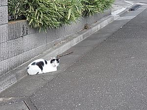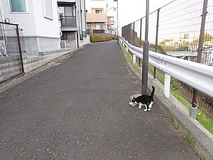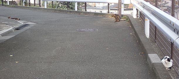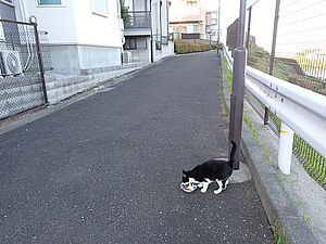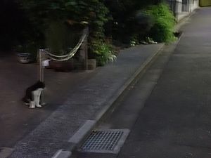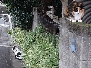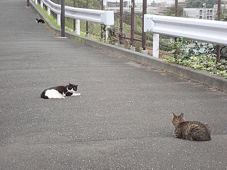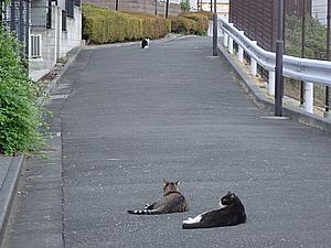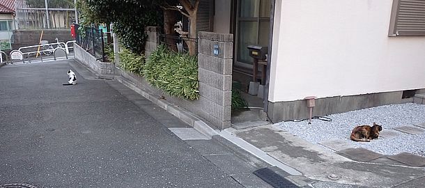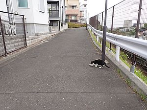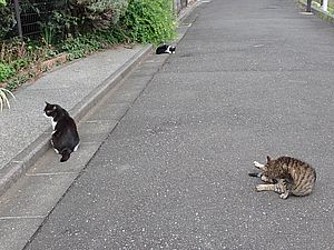 お兄さん通過するが猫に無視された。お姉さん通過も無視された。