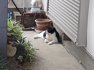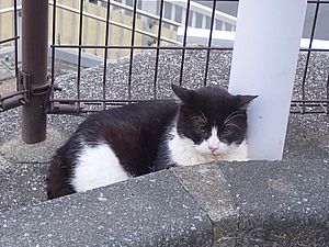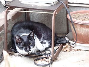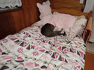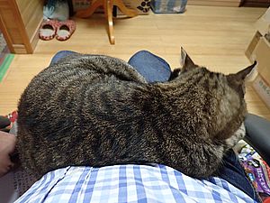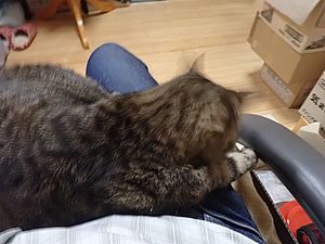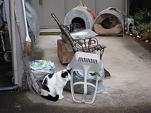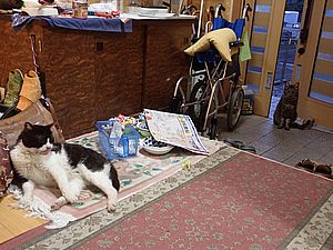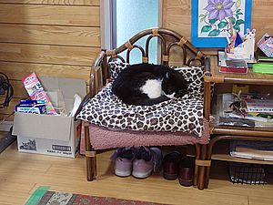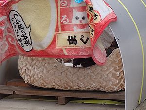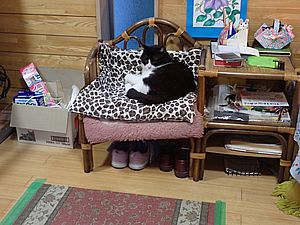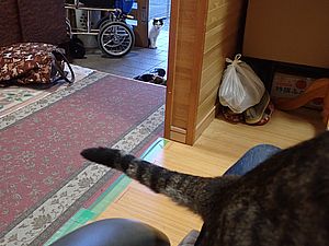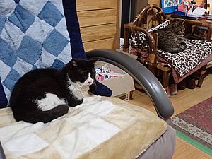 まだ猫たちがあちこちにいる。マルハチ君が挟まっていた。