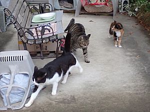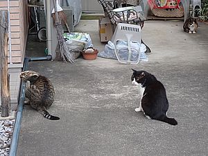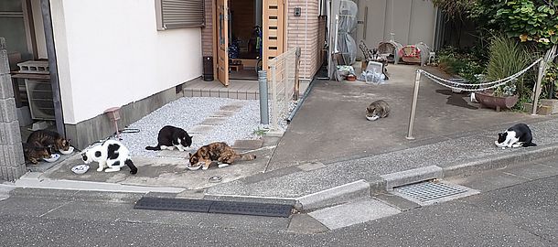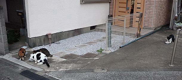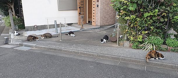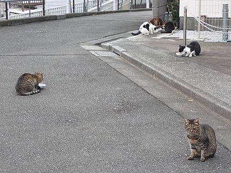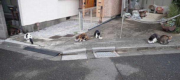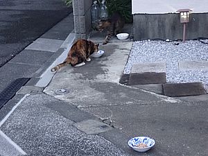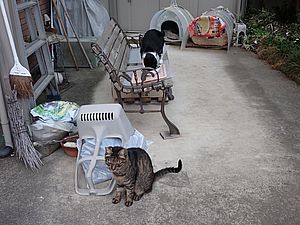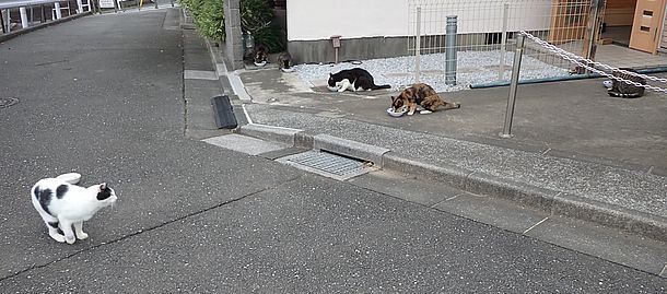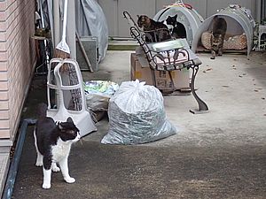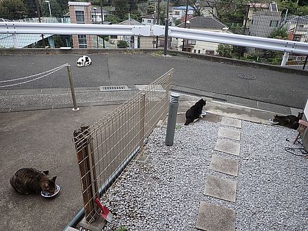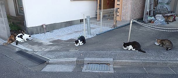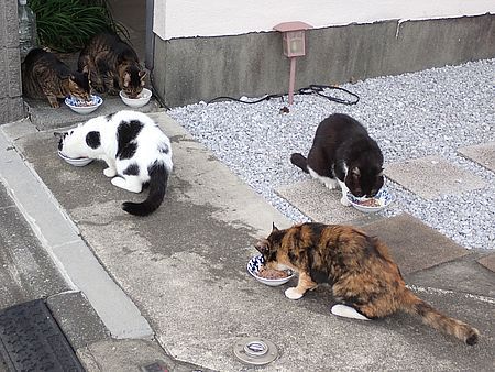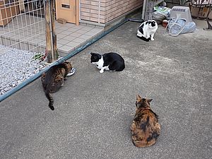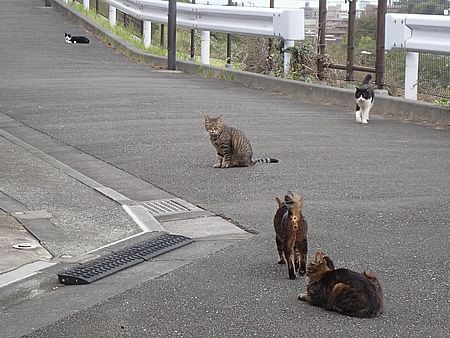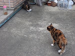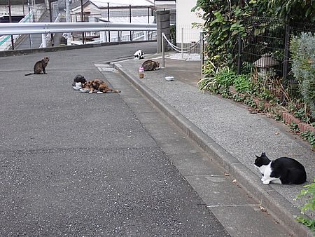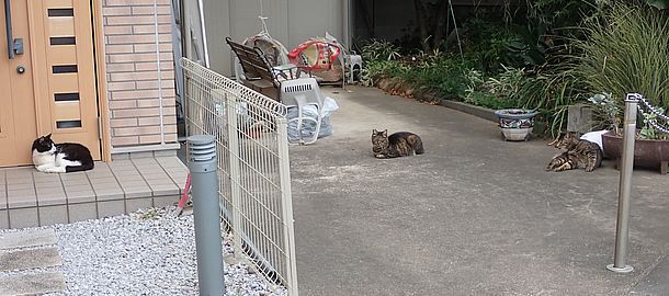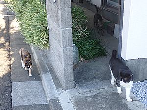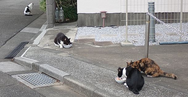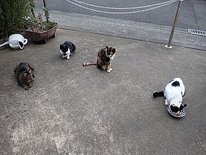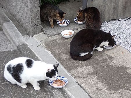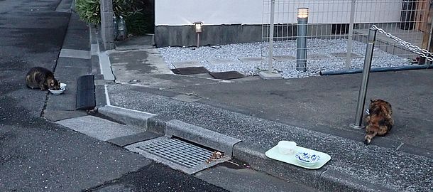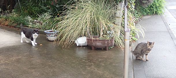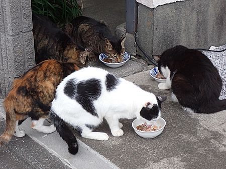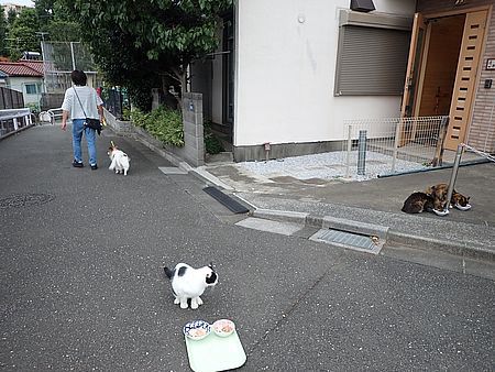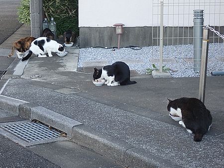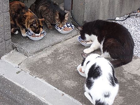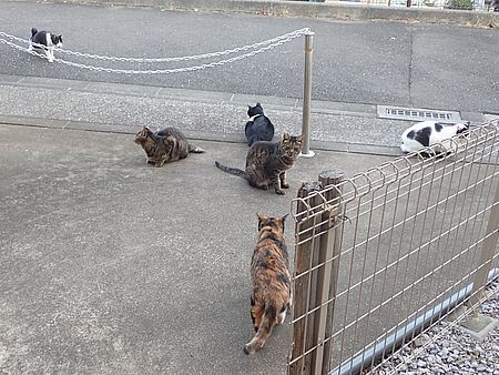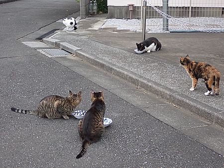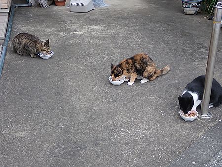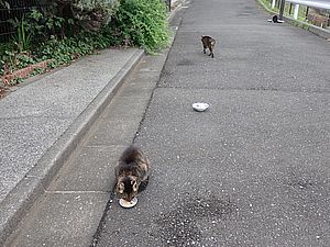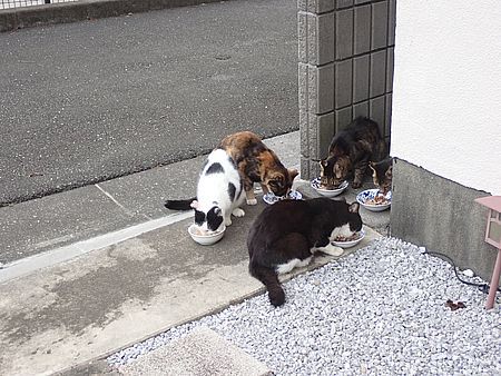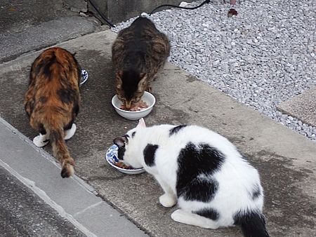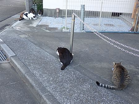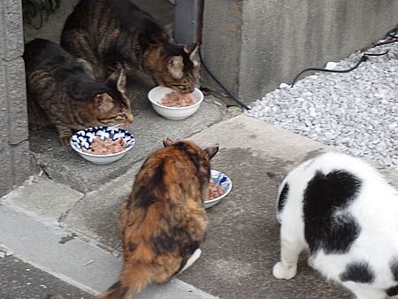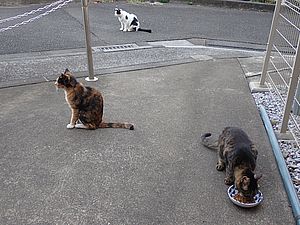 夕方になってばあちゃんと猫の様子を見に行く。猫軍団の2匹以外は揃っていた。