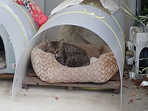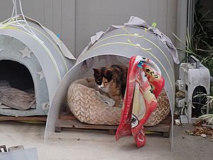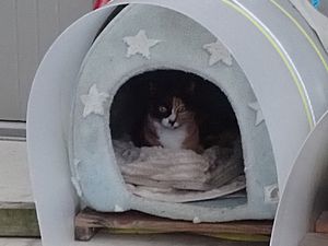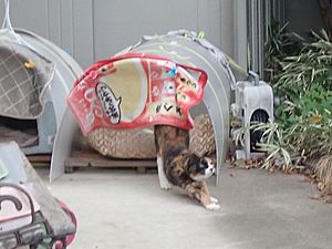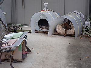 ケアマネージャーが先に来ていた。元祖黒トラとマルハチ君が小屋の中にいる。