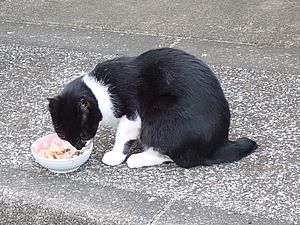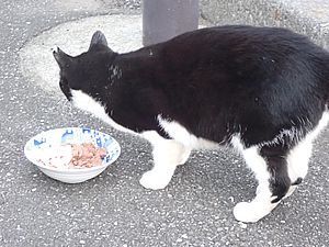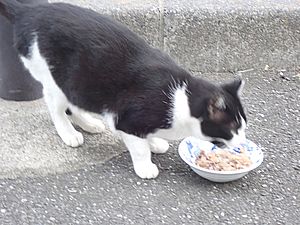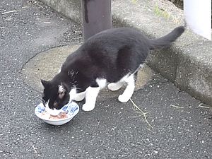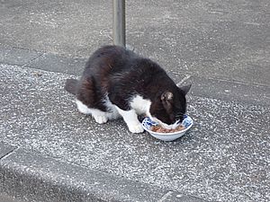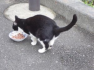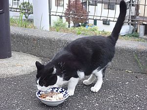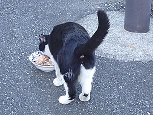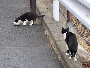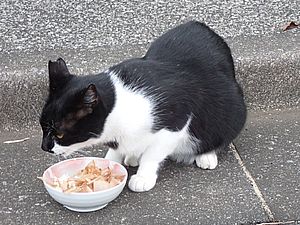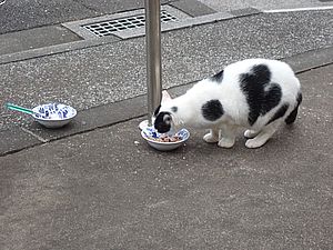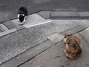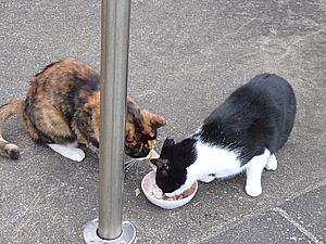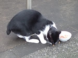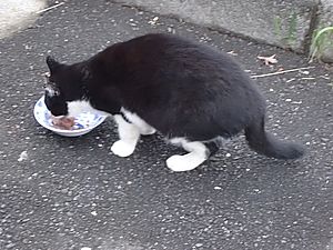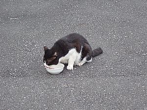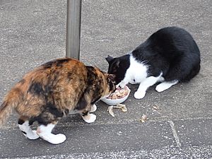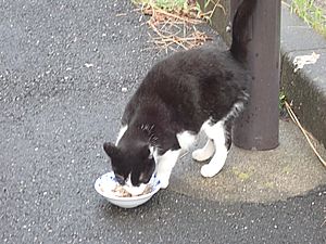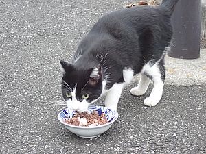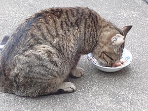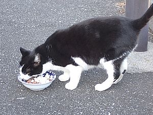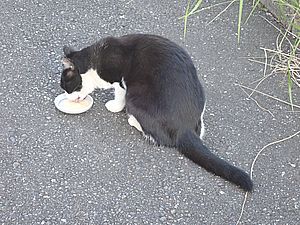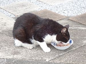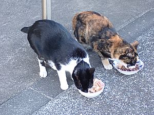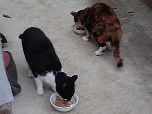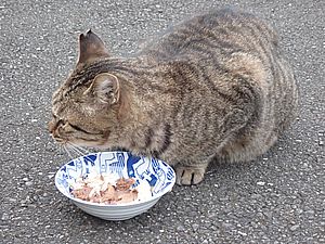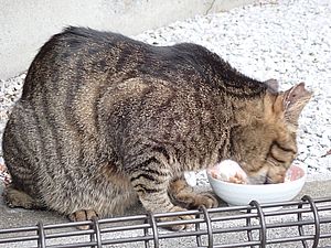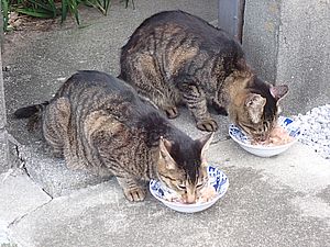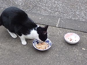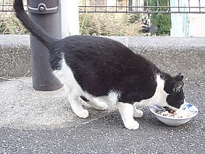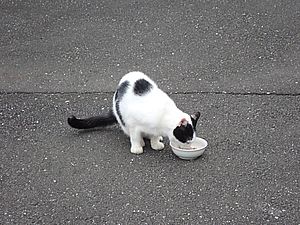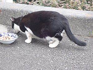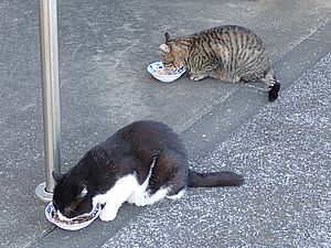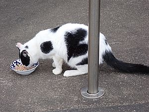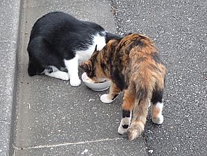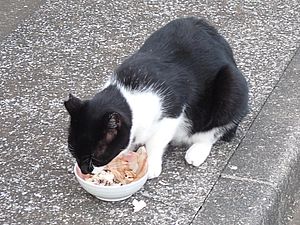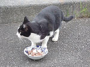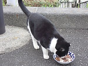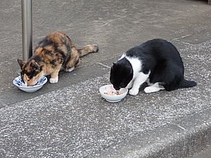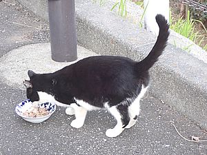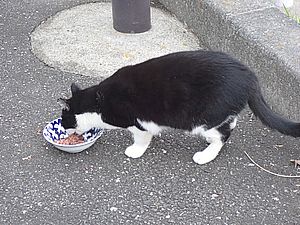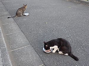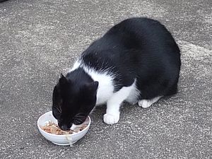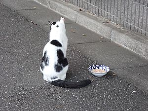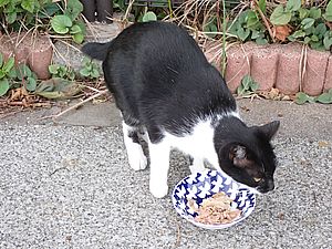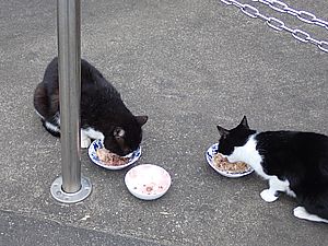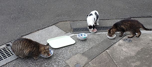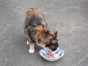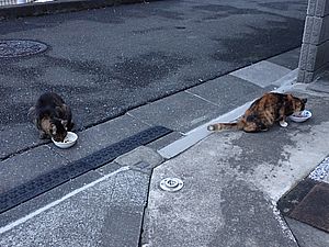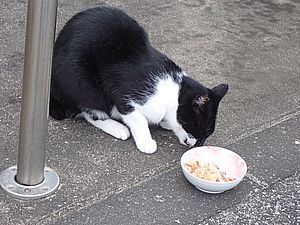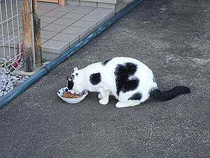 マルハチ君は路上食い。カウ君はさらに追加も食べている。まったく猫の嗜好はわからない。