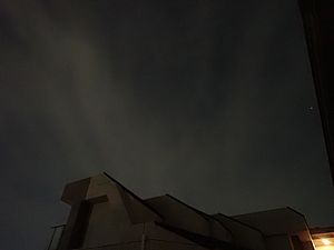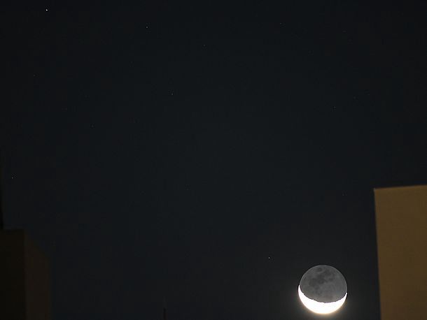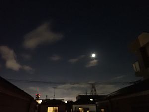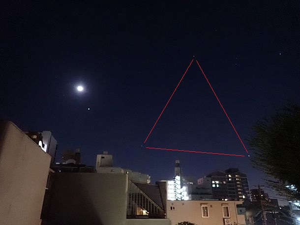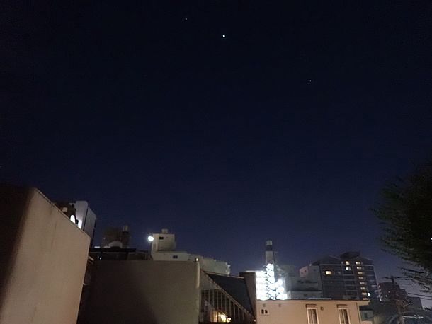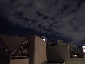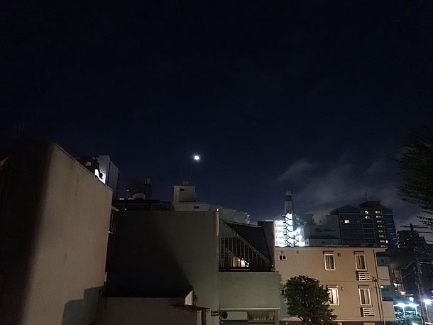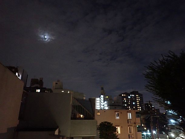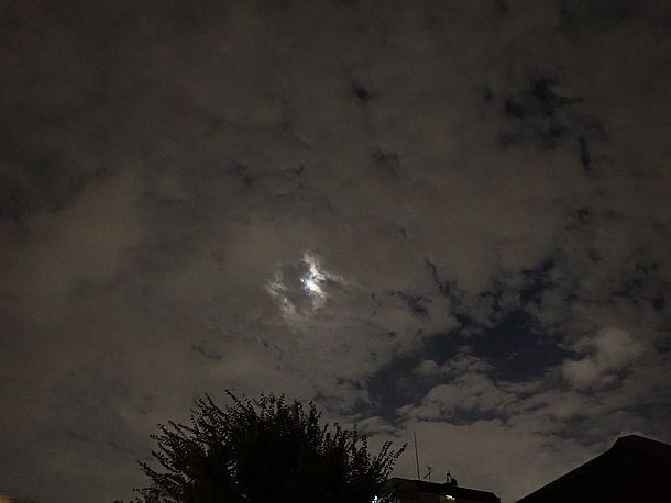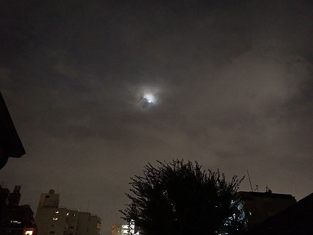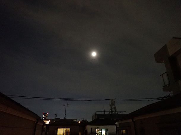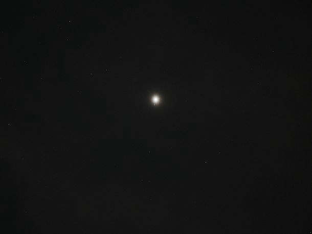20:23、月は出ているが薄雲の中なので拡大撮影は諦めた。
