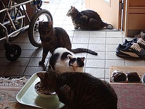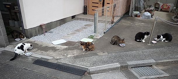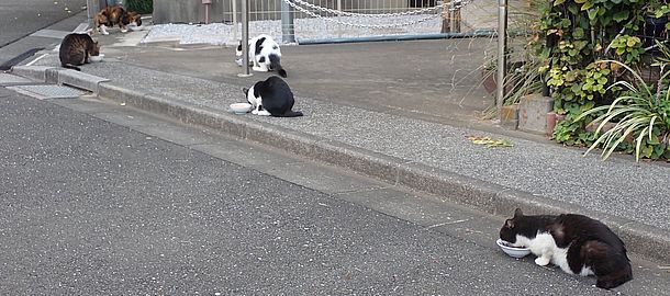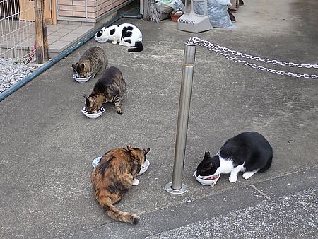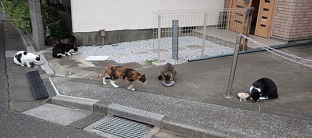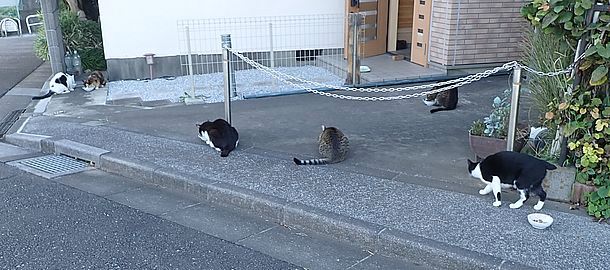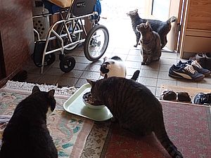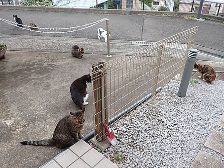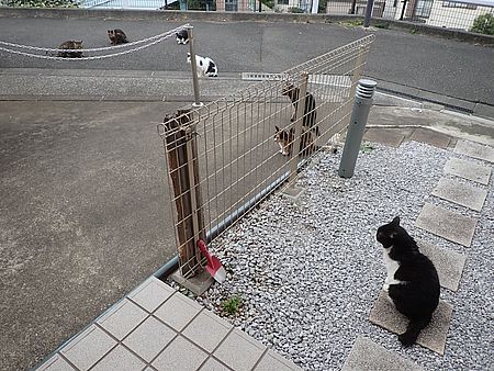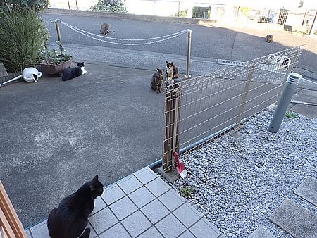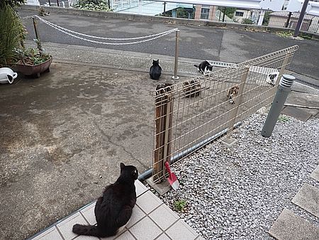 黒チビ以外の8匹が集まっている。食事タイムの準備をする。