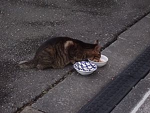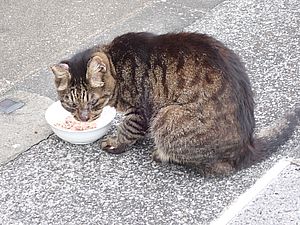 他の猫はまったく姿を見なかった。帰りに夕食を食べていく。惣菜などを買うより安上がりなのである。