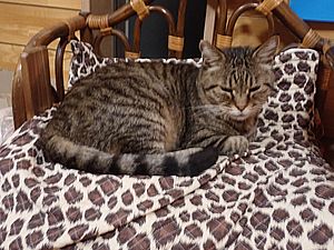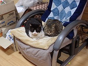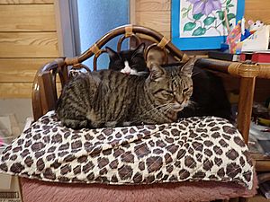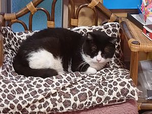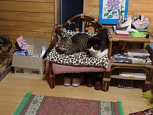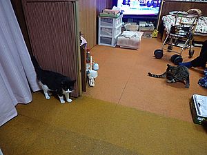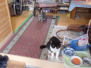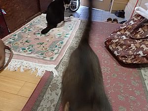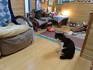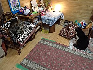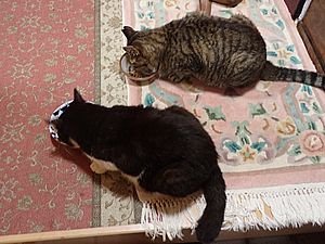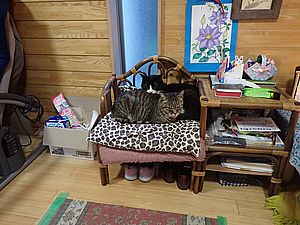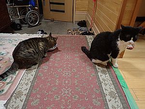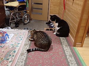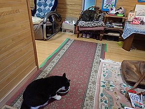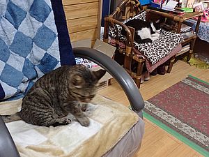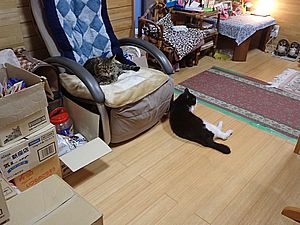 マルハチ君と元祖黒トラは室内でくつろいでいる。