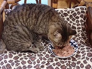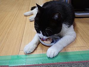 黒トラ1号に器を近づけるが食べない。しかしちゅーるは舐めた。おかわりもした。