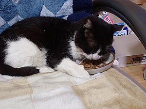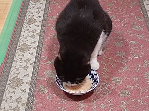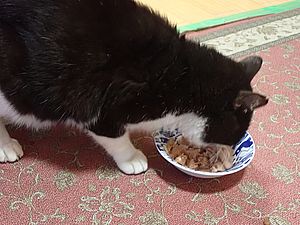 ファントム君が残りのカリカリを食べていた。