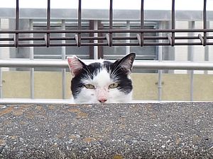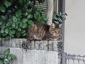 カウ君が擁壁の上で寝ていた。しかし寄ってこない。こちらに来ないのでエサをやれなかった。