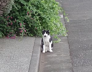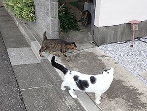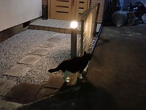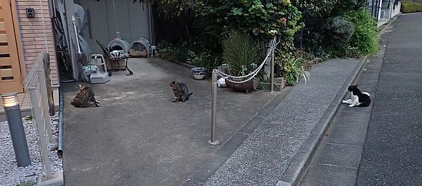 夕方になって支援物資を持ってばあちゃんと猫の様子を見に行く。お友達の家の前にカウ君とファントム君がいた。ファントム君が消えたと思ったらもう移動していた。