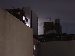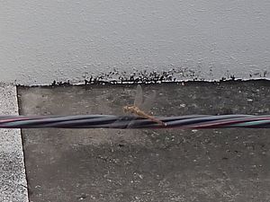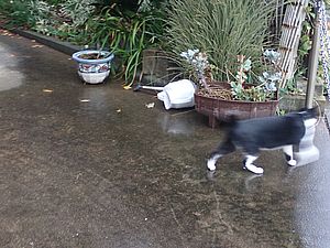 黒トラ1号はベランダ下にいた。まだ傘の必要がない程度の小雨が降っている。