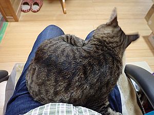 しばらくひざにゃんこ。日没が早くなってきたので照明の点灯時刻を30分早めた。今日は6匹出勤で食べていったのは5匹だけ。カウ君は今日も食べなかった。