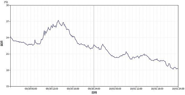 今日の最高気温は未明に出た22.8℃で、昼間は20℃前後と涼しい一日だった。明日は天気も回復し気温も戻ってきそうだ。