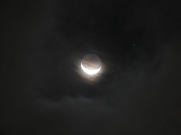 時々雲の薄い部分から月が見えてくる。雲が多いので近くにある土星は見えず。