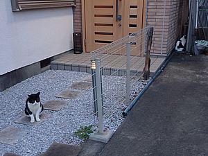 帰るときに来なかったカウ君が車の下にいた。やがてお友達の家に中に入っていった。