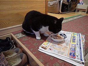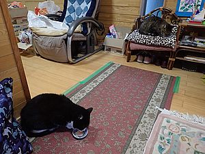 他は玄関付近で食べるが黒トラ1号は早く離脱してしまった。