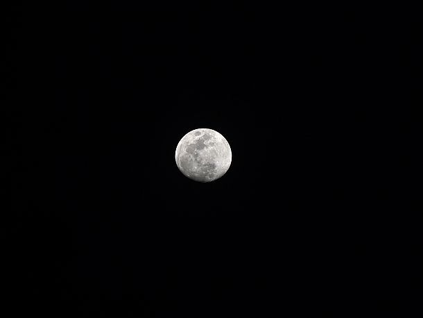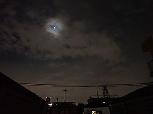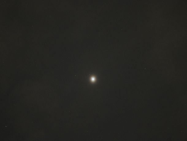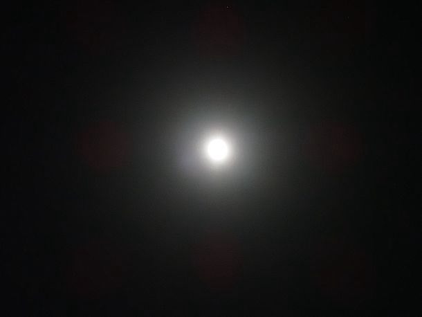 21:44、月の周りはかすんでいる。はっきりした花粉光環にはなっていない。