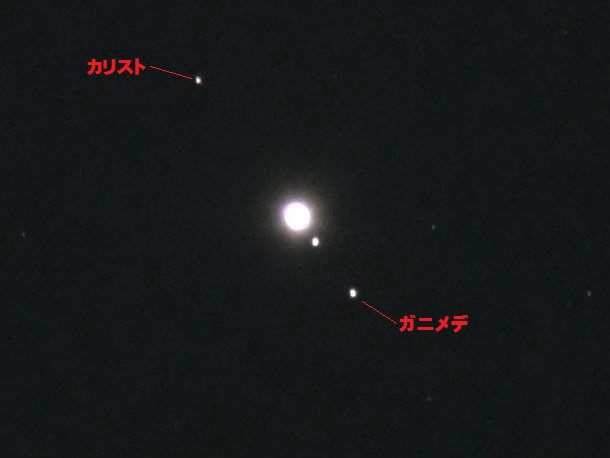 今晩の木星とガリレオ衛星。エウロパは見える位置にあるのだが木星の影に入って見えていない。
