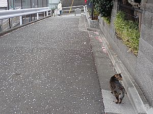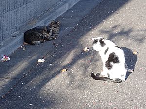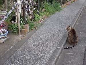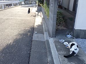 あご黒も遠くで様子を見ている。黒トラ1号が姿を見せ8匹全員集合した。