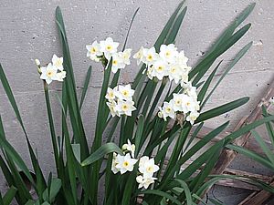 スイセンがきれいに咲いている。ニワウメも新芽が出て花芽の先端が色づいてきた。春の足音が聞こえる。