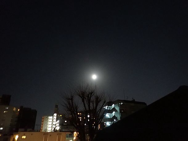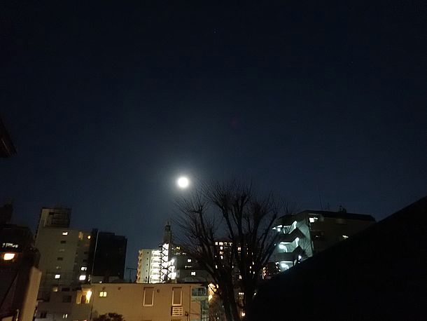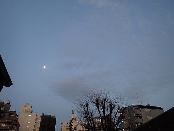 20:18、月が昇ってきた。1日前は皆既月食中だった。