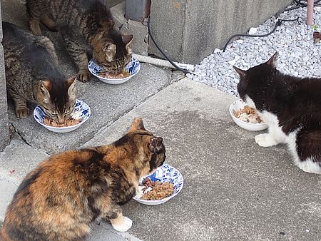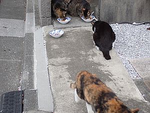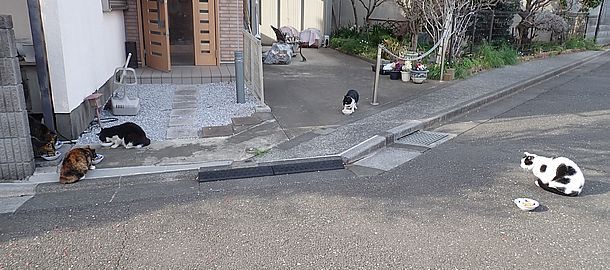猫たちが集まっている。