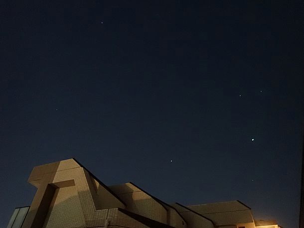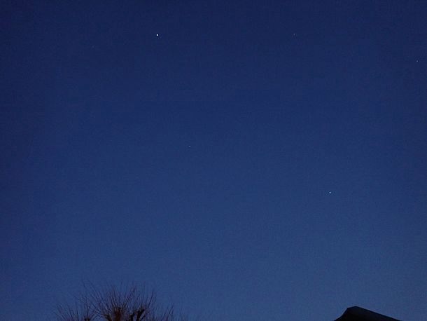 今日の木星と冬の大三角形。そろそろ夕方の木星撮影は終了か?
