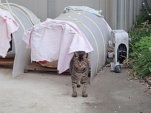 再び支援物資をもってばあちゃんと猫の様子を見に行く。黒トラ2号とカウ君がいた。あご黒も待機中。