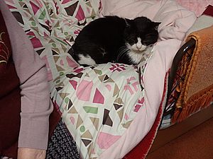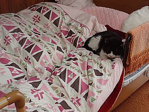 元祖黒トラとマルハチ君はススキベッドで寝ている。