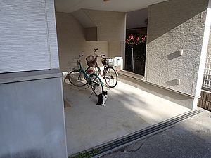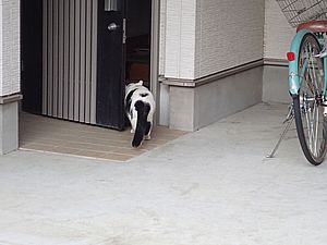 カウ君がお友達の家から出てきた。マルハチ君はデモンストレーション。
