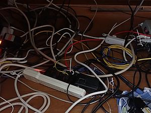 曇り空の朝。ゴミ出しをする。イルミネーションの配線を撤去し忘れていたので取り外す。