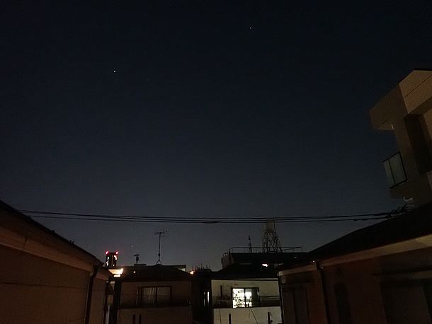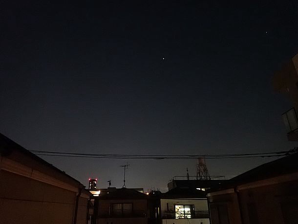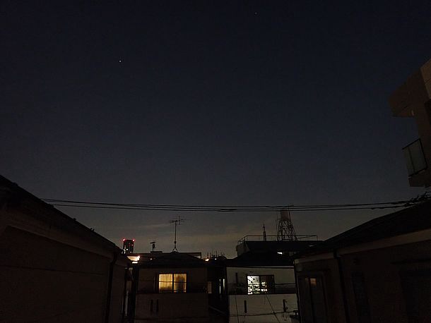 18:10、まだ空は明るいが木星の高度が上がってきたので撮影する。