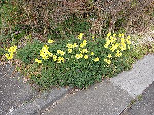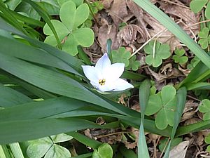 カウ君が擁壁の上の枯草の上にいた。オオキ花カタバミの花が多くなってきた。歴代の猫はこの花も棺に入った。