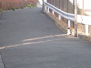 ファントム君は離れて歩道上で食べる。