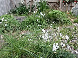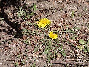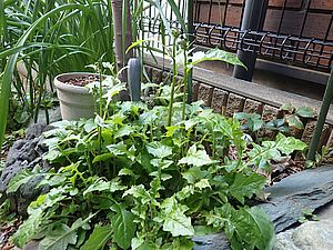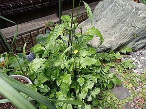 庭のオニタビラコの花が咲いた。オオムラサキも花芽をつけている