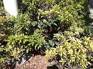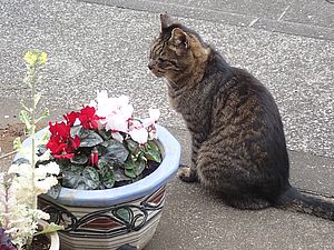 黒トラ2号も猫三角地帯で残務整理。葉ボタンの花が咲き始めた。